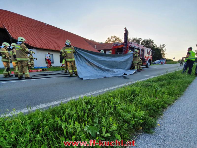 Um 19:41 Uhr wurde die Freiwillige Feuerwehr Kuchl mittels Sirenenalarm zu einem schweren Verkehrsunfall mit Fahrzeugüberschlag und eingeklemmter Person gerufen.