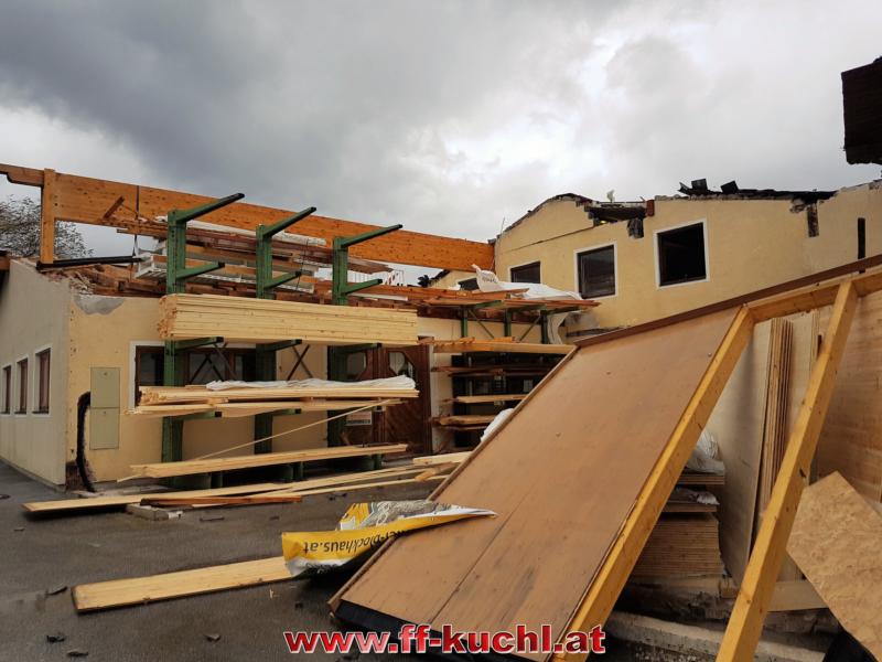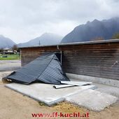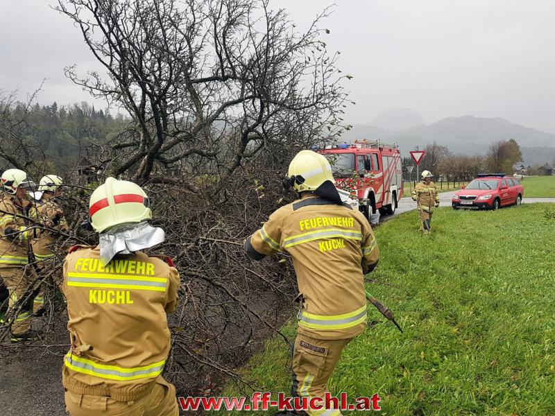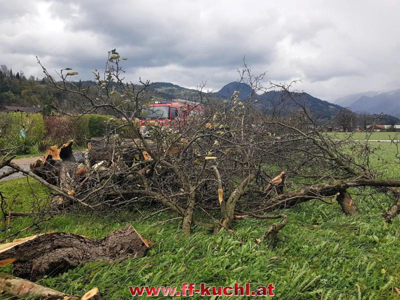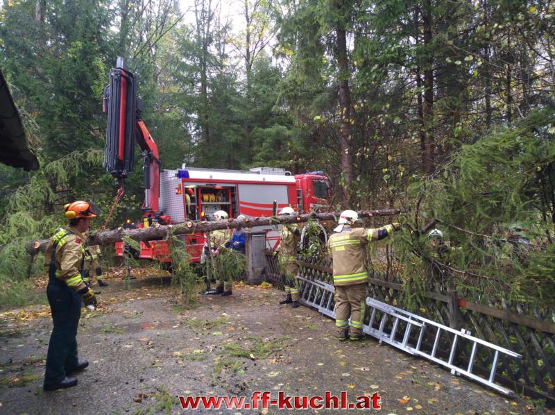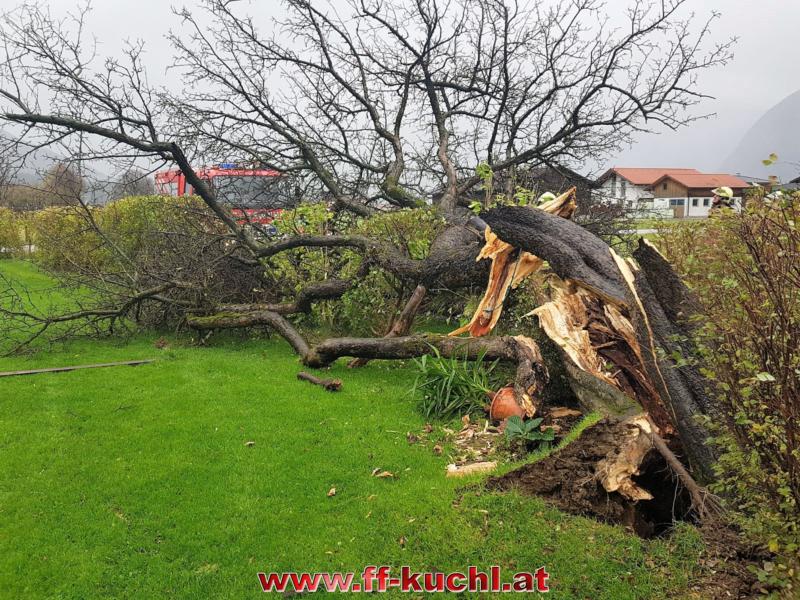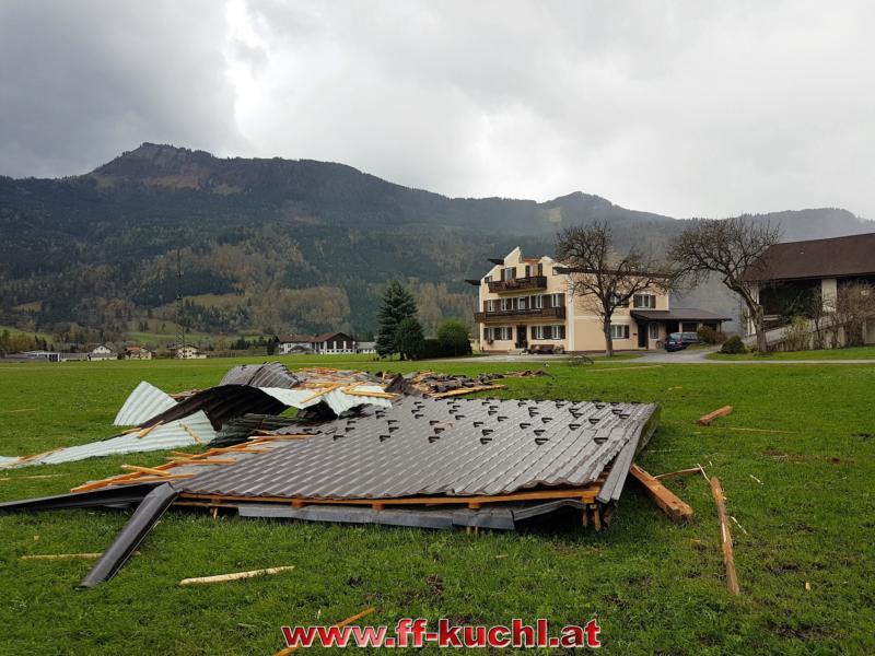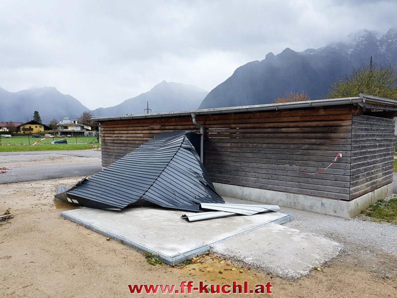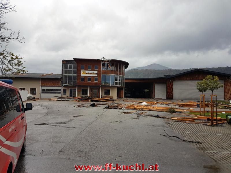 Über Rufempfänger wurden 42 Mitglieder der Freiwilligen Feuerwehr Kuchl um 10:08 Uhr alarmierten und standen dann stundenlang im Einsatz. Durch Sturmböen bis zu 110 Km/h wurden mehrere Dächer abgedeckt und viele Bäume stürzten um (teilweise auf Fahrzeuge und Dächer).