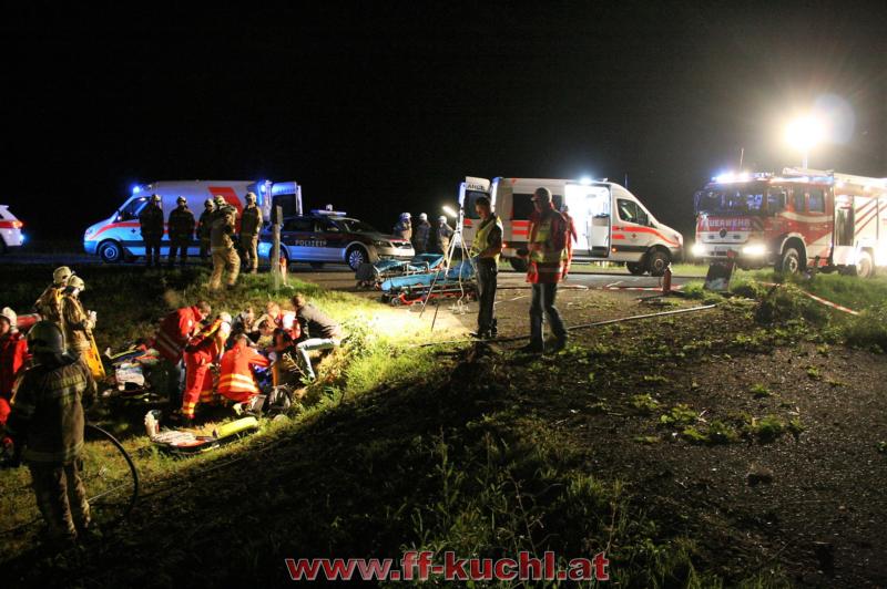 Eingesetzte Kräfte: FF Kuchl, LZ Jadorf, Rotes Kreuz, Polizei, Unfallsachverständiger, Abschleppdienst