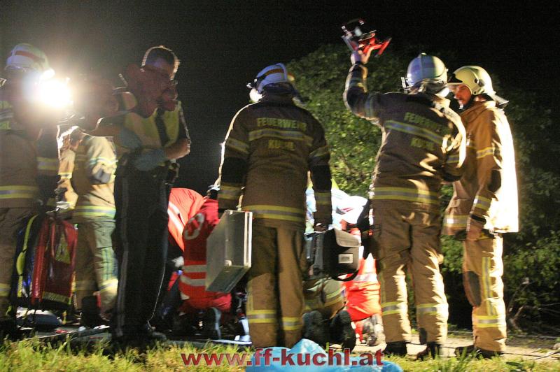 Um 22:10 Uhr wurde die Freiwillige Feuerwehr Kuchl von der Landes-, Alarm- und Warnzentrale Salzburg über Sirene und Rufempfänger alarmiert: Verkehrsunfall mit eingeklemmter Person in Kellau B 159 Nähe Zirkuszelt ...