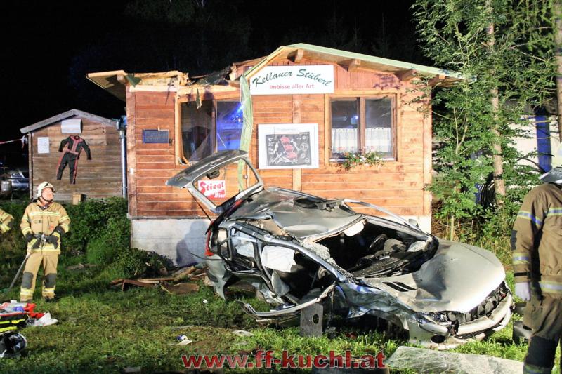 Laut Polizeibericht war ein PKW mit drei jungen Männern aus ungeklärter Ursache ins Schleudern geraten und von der Bundesstraße abgekommen. Durch den Aufprall auf die Böschung einer Nebenstraße katapultierte das Fahrzeug in die Höhe und es schlug am Dach eines Imbisstandes ein. Nachbarn, Zirkusleute und Passanten kümmerten sich sofort vorbildlich um die verunfallten Personen. Auch die Rettungskräfte - Rotes Kreuz, Polizei und Feuerwehr - waren innerhalb kurzer Zeit vor Ort und leisteten Erste Hilfe. Einer der drei jungen Männer - ein 17-jähriger Halleiner - erlag leider an der Unfallstelle seinen schweren Verletzungen. Unser Mitgefühl gilt den Angehörigen und Freunden. Die zwei weiteren Fahrzeuginsassen kamen nach der Erstversorgung schwer verletzt in die Krankenhäuser.