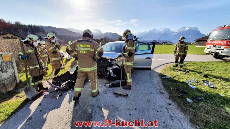 Die Mitglieder der Freiwilligen Feuerwehr Kuchl übernahmen die Absicherung der Unfallstelle. Brandschutz wurde aufgebaut und ausfließende Flüssigkeiten gebunden. Nach den Aufräumungsarbeiten konnten die Einsatzkräfte nach ca. einer Stunde wieder einrücken.