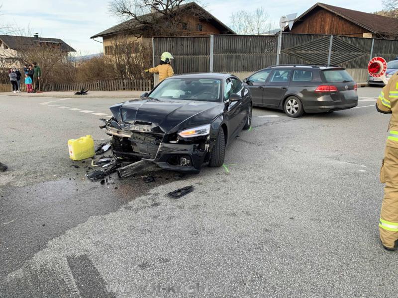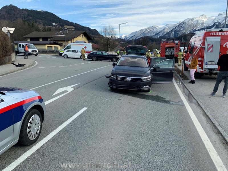 Ein PKW-Fahrer übersah die Vorfahrt an der Kreuzung und kollidierte mit einem zweiten Fahrzeug. Zwei Personen wurden verletzt ins Krankenhaus nach Salzburg gebracht. Durch den starken Reiseverkehr auf der Tauernautobahn kam es auch auf der Bundesstraße zu einem kilometerlangen Stau zwischen Kuchl und Golling. Dies behinderte etwas die Zufahrt durch die Einsatzkräfte. Die Feuerwehr Kuchl richtete eine umfangreiche Umleitung ein, richtete einen Brandschutz ein und übernahm die Aufräumungsarbeiten.