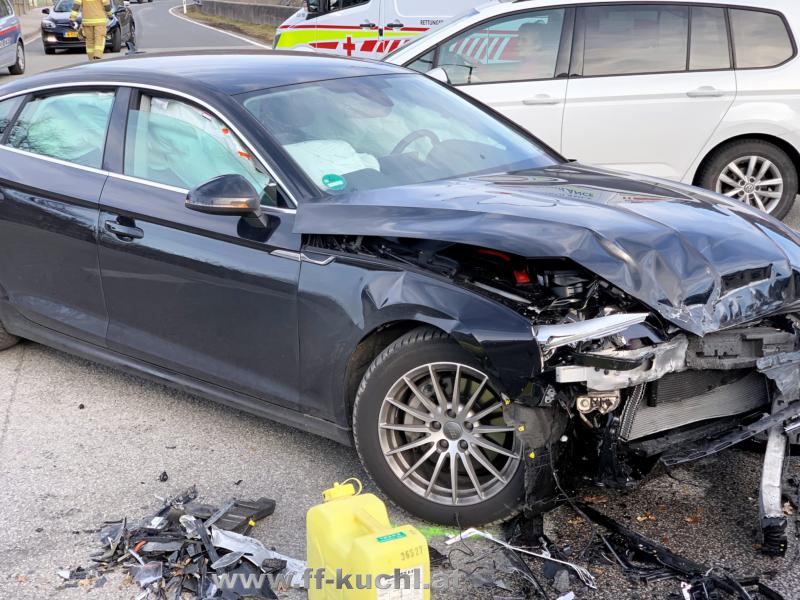 Eingesetzte Kräfte: FF Kuchl, LZ Jadorf, Rotes Kreuz, Polizei, Abschleppunternehmen