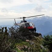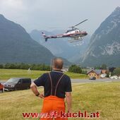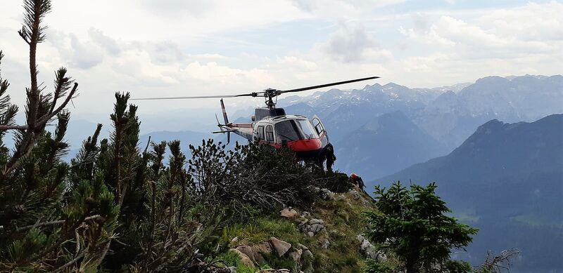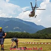 Nach einem Erkundungsflug mit dem Hubschrauber des BMI durch Flugdiensteinsatzleiter OBm Putz Florian (FF Kuchl) und dem Einsatzleiter der Bergrettung - Helmut Eichholzer wurde in Absprache aller Verantwortlichen beschlossen, den Kleinbrand mit Löschrucksäcken aus dem Waldbrandanhänger durch die Männer der Bergrettung zu bekämpfen und den Latschenboden auf zu graben.