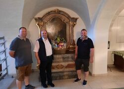 Zu diesem Anlass überraschten OFK ABI Gerhard Scherfl, Löschzugskommandant BI Christian Mayr sowie OFK Stv. HBI Johannes Struber unseren Pfarrer mit einem Geschenkskorb und...